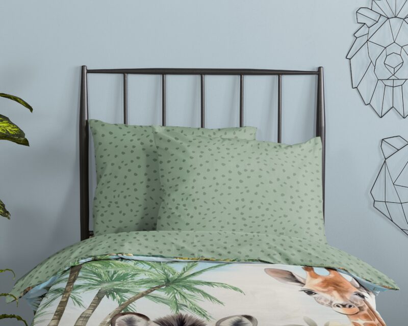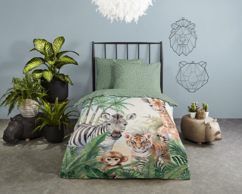 Kinderdekbedovertrek “Thabo” van Good Morning met jungle dieren, in de kleur “Multi” is gemaakt van 100% katoen. Deze kwaliteit is ademend, vochtabsorberend en voelt zacht en soepel aan. Dit leuke kinderdekbedovertrek is een toevoeging aan iedere kinderkamer en is geschikt voor ieder jaargetijde. Het katoenen dekbedovertrek is heerlijk koel in de zomer en geeft warmte in de winter.