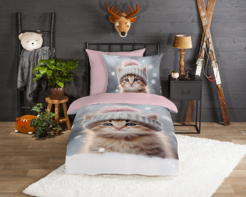 Good Morning Kinderdekbedovertrek “kat/ poes” – Multi – (135×200 cm) – Katoen Flanel