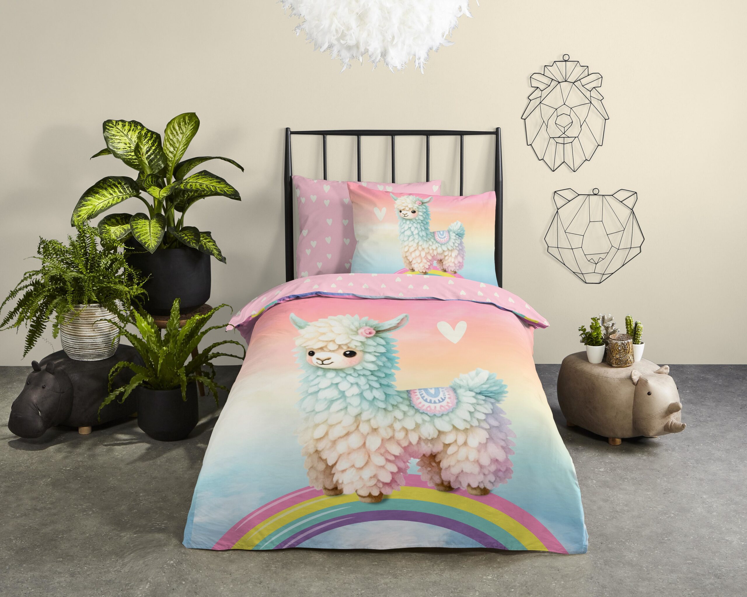 Good Morning Kinderdekbedovertrek “Lama” – Multi – (140×200/220 cm) – Katoen