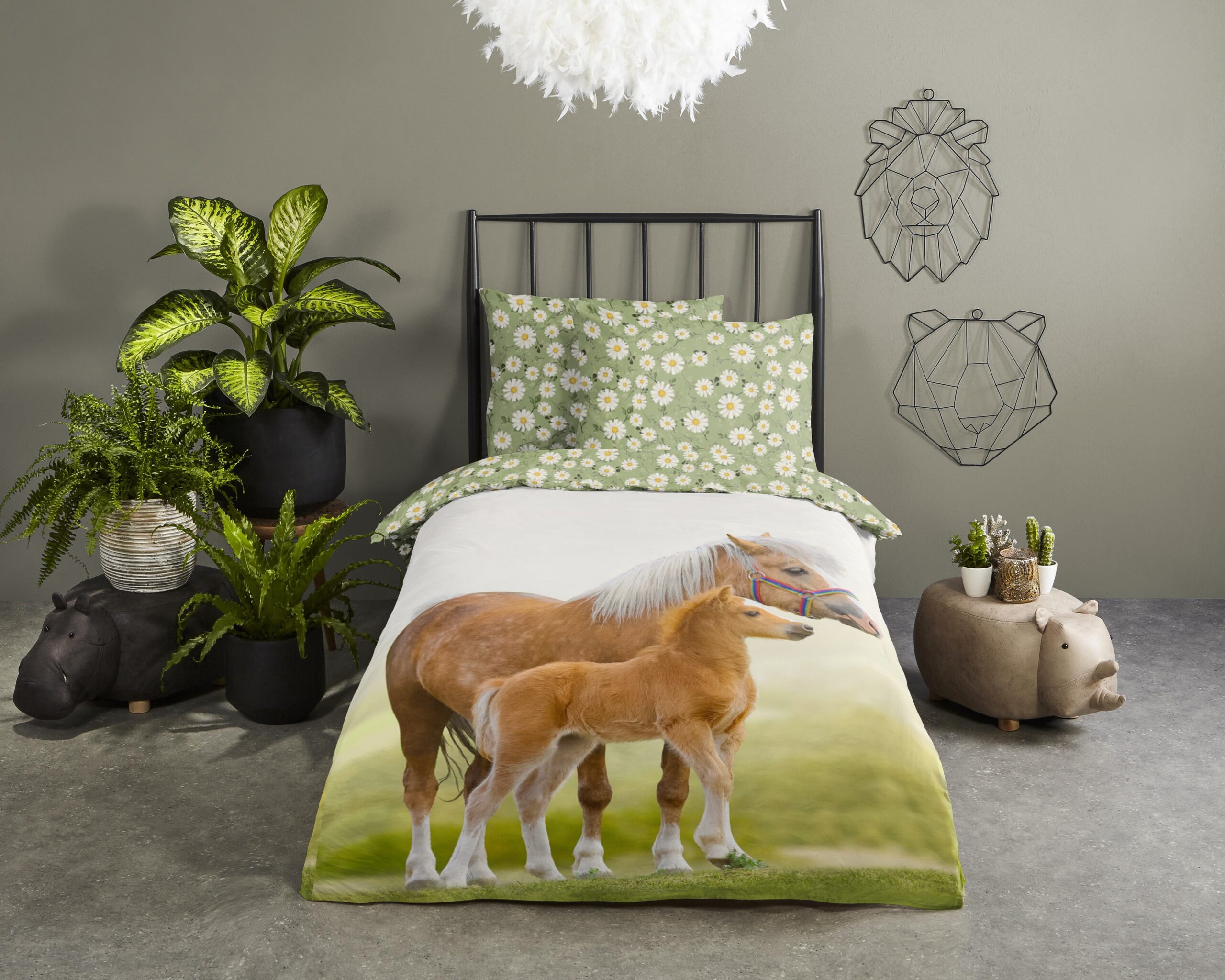 Kinderdekbedovertrek “Young” van Good Morning met paarden, in de kleur “Groen” is gemaakt van 100% katoen. Deze kwaliteit is ademend, vochtabsorberend en voelt zacht en soepel aan. Dit leuke kinderdekbedovertrek is een toevoeging aan iedere kinderkamer en is geschikt voor ieder jaargetijde. Het katoenen dekbedovertrek is heerlijk koel in de zomer en geeft warmte in de winter.