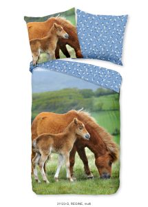 Kinderdekbedovertrek “Regine” van Good Morning met paarden, in de kleur “Multi” is gemaakt van 100% katoen. Deze kwaliteit is ademend, vochtabsorberend en voelt zacht en soepel aan. Dit leuke kinderdekbedovertrek is een toevoeging aan iedere kinderkamer en is geschikt voor ieder jaargetijde. Het katoenen dekbedovertrek is heerlijk koel in de zomer en geeft warmte in de winter.