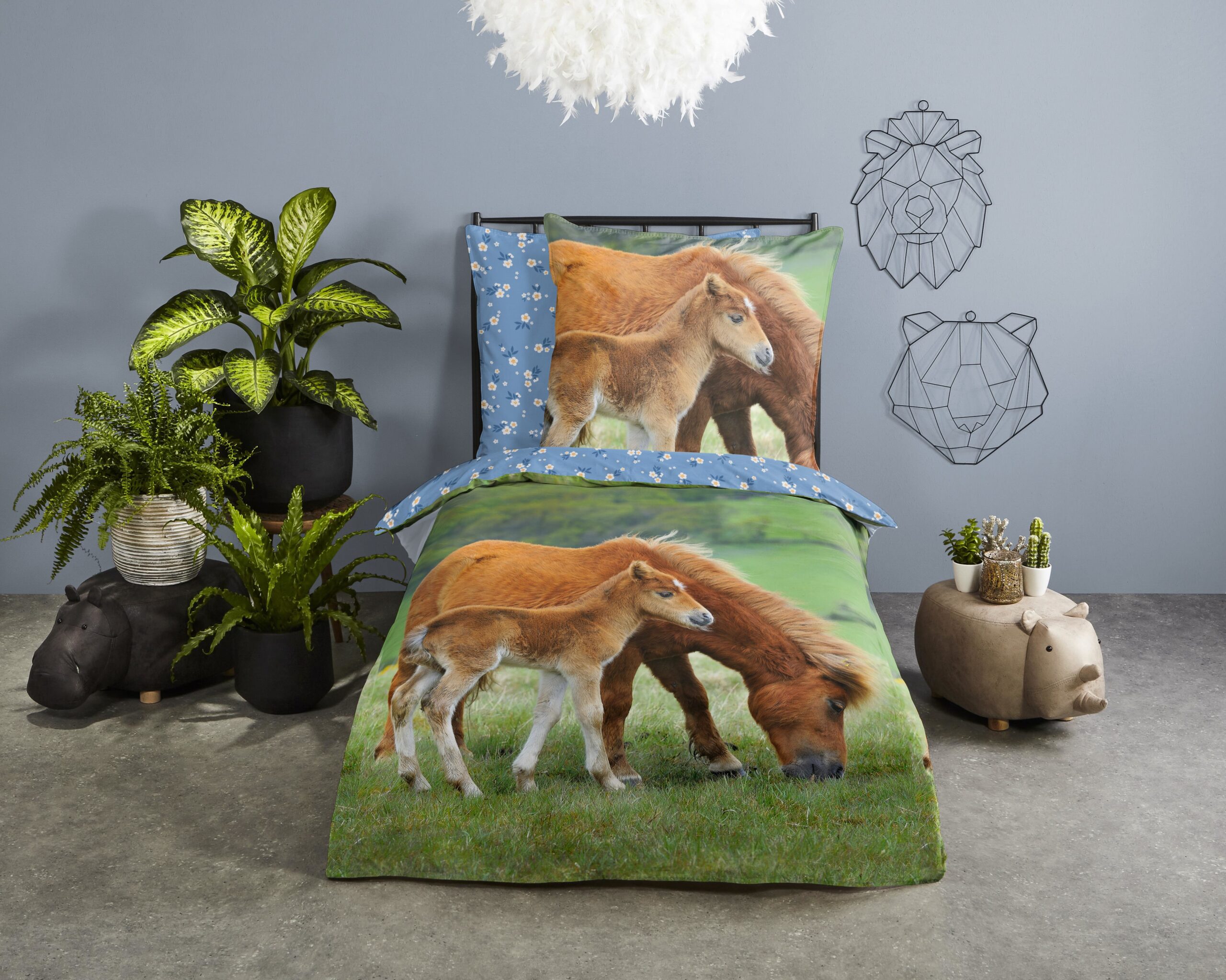 Good Morning Kinderdekbedovertrek “paarden” – Multi – (135×200 cm) – Katoen