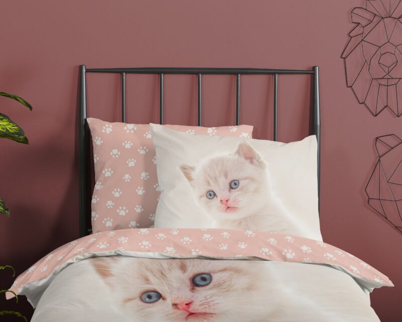 Kinderdekbedovertrek “Catty” van Good Morning met poes, in de kleur “Ecru” is gemaakt van 100% katoen. Deze kwaliteit is ademend, vochtabsorberend en voelt zacht en soepel aan. Dit leuke kinderdekbedovertrek is een toevoeging aan iedere kinderkamer en is geschikt voor ieder jaargetijde. Het katoenen dekbedovertrek is heerlijk koel in de zomer en geeft warmte in de winter.