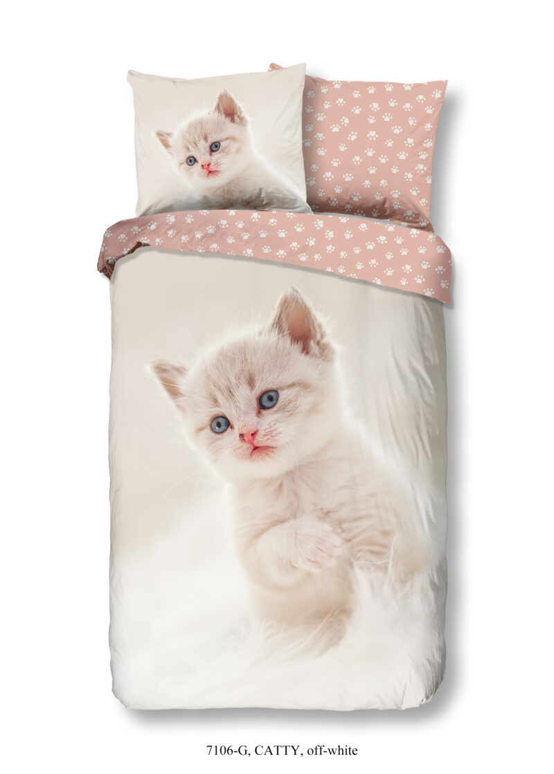 Good Morning Kinderdekbedovertrek “poes” – Ecru – (140×200/220 cm) – Katoen
