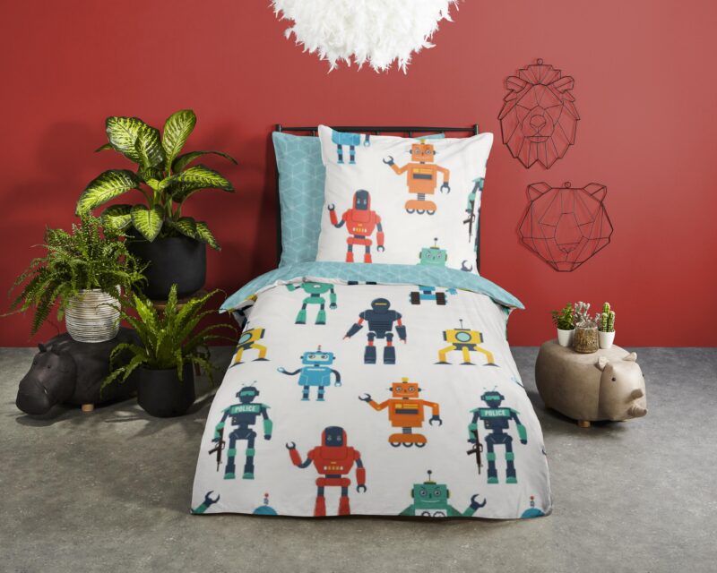 Good Morning Kinderdekbedovertrek “robots” – Multi – (135×200 cm) – Katoen