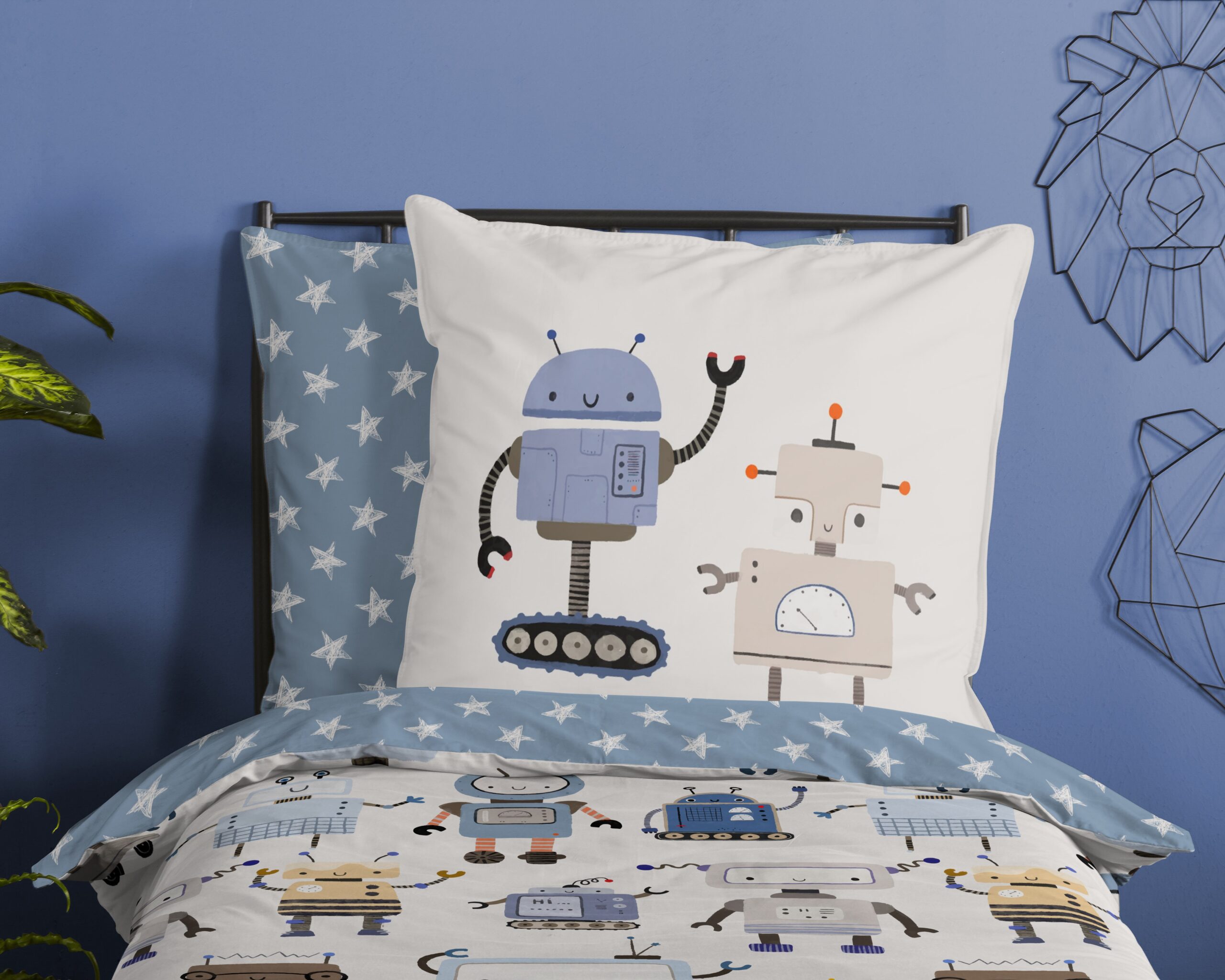 Kinderdekbedovertrek “Robo” van Good Morning met robots, in de kleur “Multi” is gemaakt van 100% katoen. Deze kwaliteit is ademend, vochtabsorberend en voelt zacht en soepel aan. Dit leuke kinderdekbedovertrek is een toevoeging aan iedere kinderkamer en is geschikt voor ieder jaargetijde. Het katoenen dekbedovertrek is heerlijk koel in de zomer en geeft warmte in de winter.