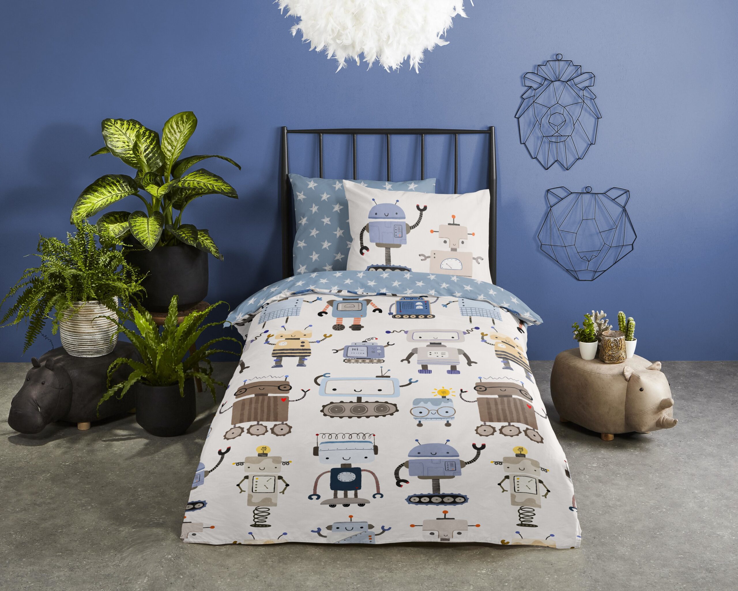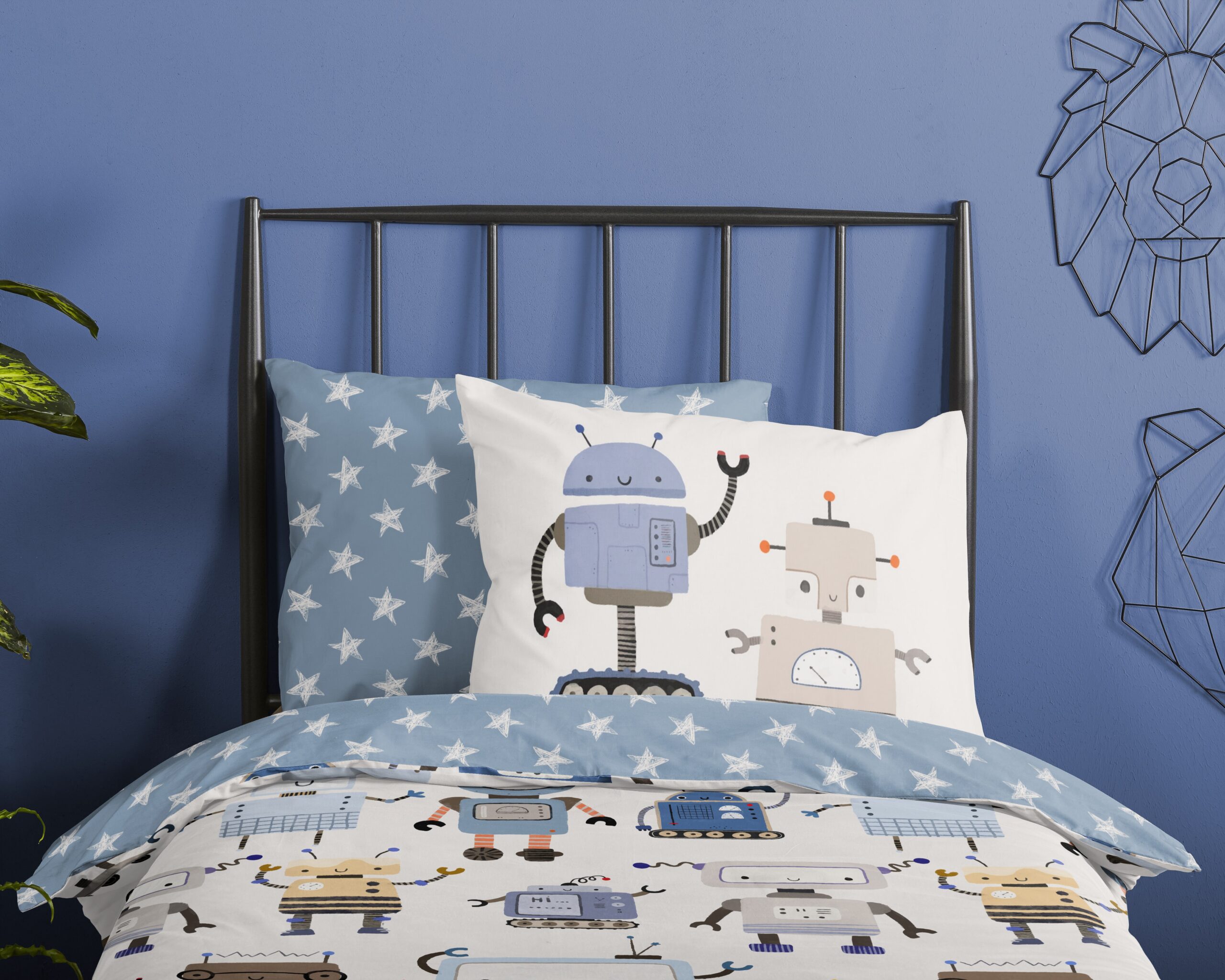 Kinderdekbedovertrek “Robo” van Good Morning met robots, in de kleur “Multi” is gemaakt van 100% katoen. Deze kwaliteit is ademend, vochtabsorberend en voelt zacht en soepel aan. Dit leuke kinderdekbedovertrek is een toevoeging aan iedere kinderkamer en is geschikt voor ieder jaargetijde. Het katoenen dekbedovertrek is heerlijk koel in de zomer en geeft warmte in de winter.