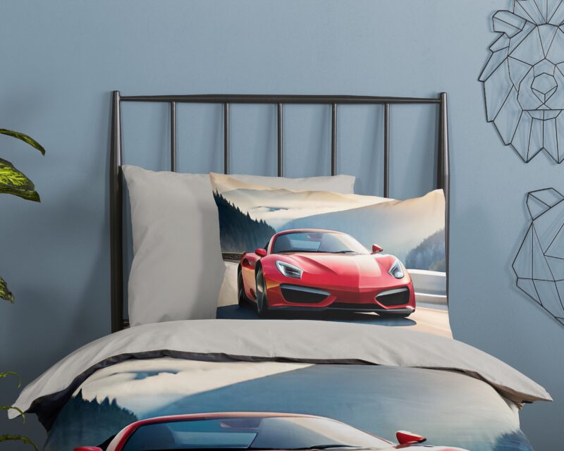 Good Morning Kinderdekbedovertrek “rode sportieve auto” – Multi – (140×200/220 cm) – Katoen