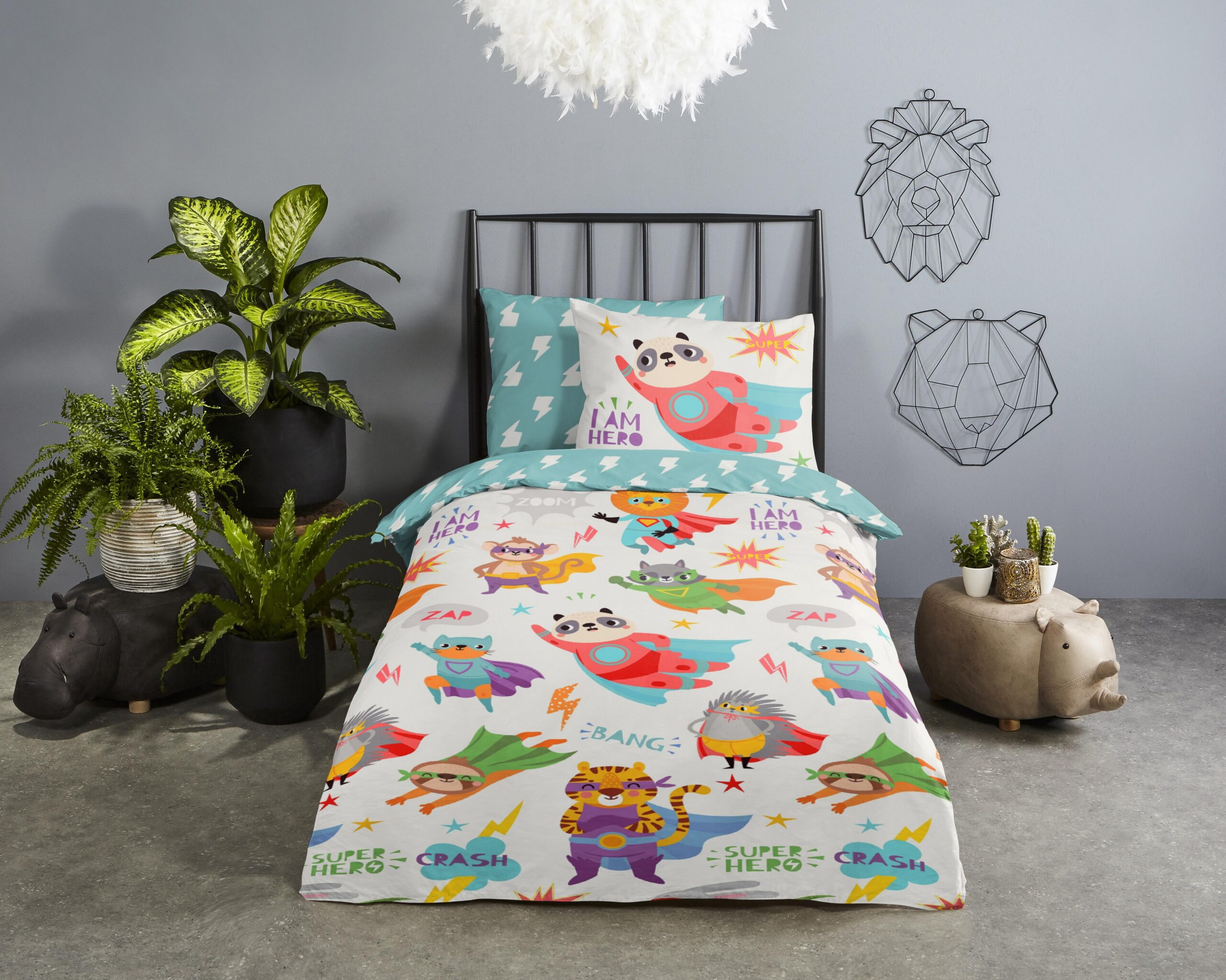 Good Morning Kinderdekbedovertrek “superheld dieren” – Multi – (140×200/220 cm) – Katoen
