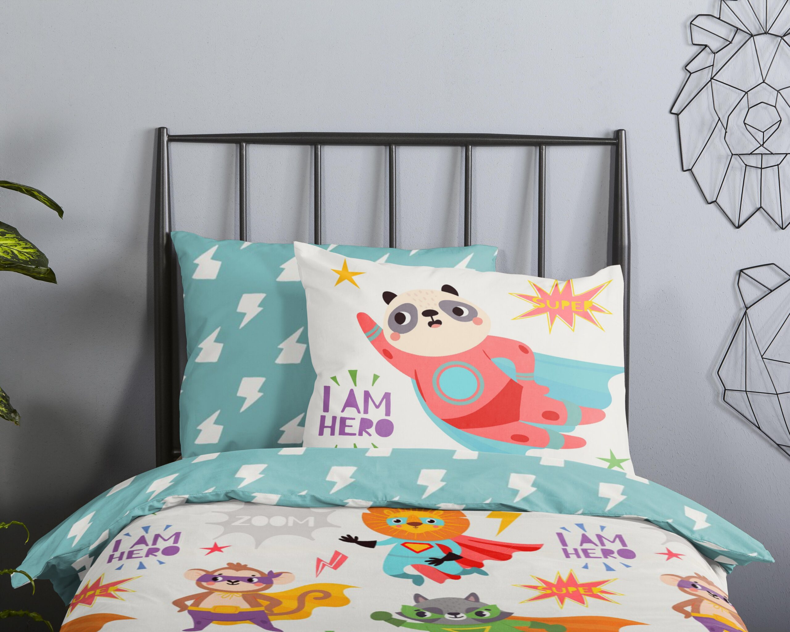 Kinderdekbedovertrek “Superhero” van Good Morning met superheld dieren, in de kleur “Multi” is gemaakt van 100% katoen. Deze kwaliteit is ademend, vochtabsorberend en voelt zacht en soepel aan. Dit leuke kinderdekbedovertrek is een toevoeging aan iedere kinderkamer en is geschikt voor ieder jaargetijde. Het katoenen dekbedovertrek is heerlijk koel in de zomer en geeft warmte in de winter.