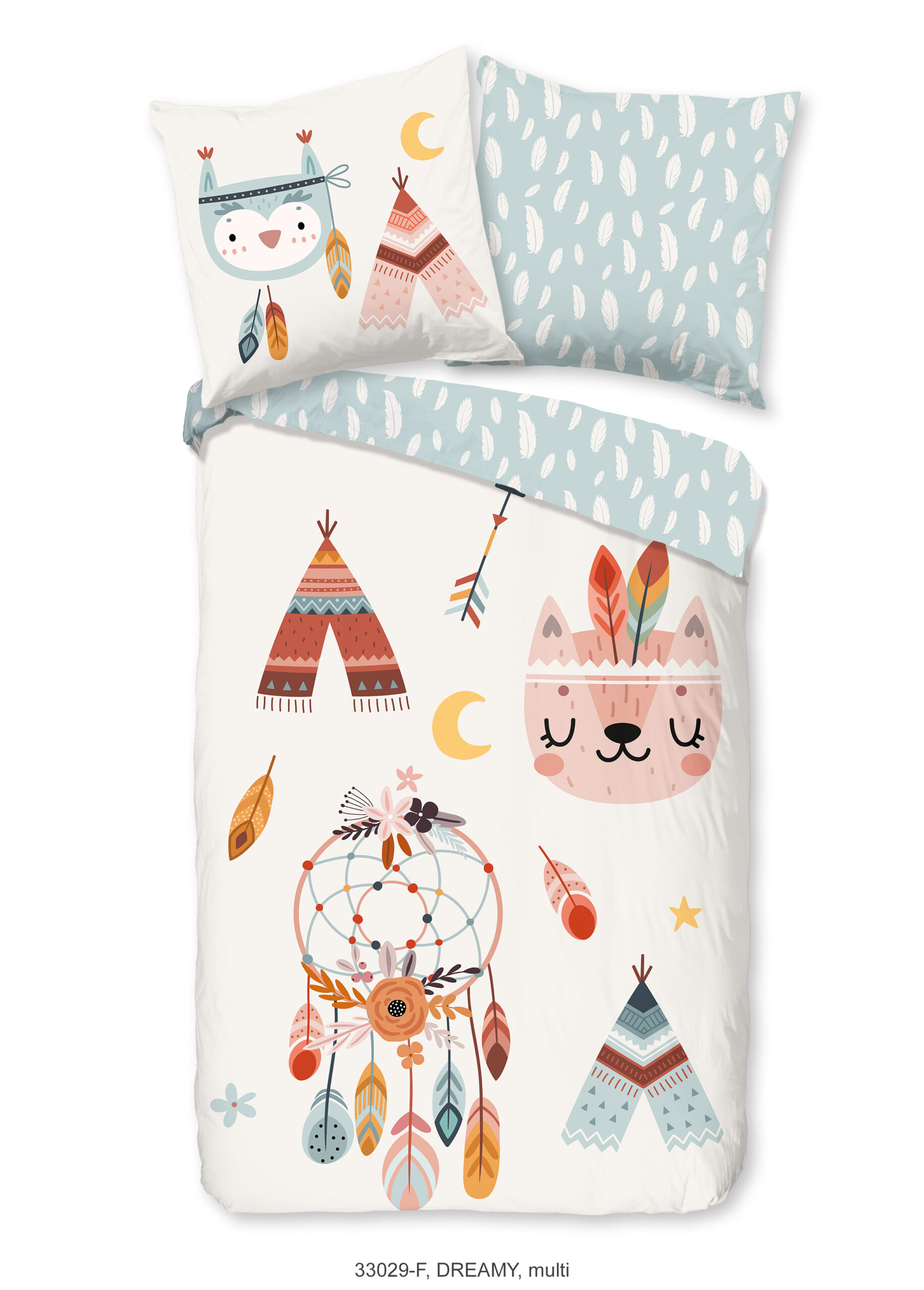 Flanellen Kinderdekbedovertrek “Dreamy” van Good Morning met tipi-tenten / boho, in de kleur “Multi” is gemaakt van 100% geruwde 100% katoen/flanel. Doordat het katoen licht opgeruwd is, ontstaat er een zacht laagje. Deze warme, zachte stof is ademend en vochtabsorberend. Dit leuke kinderdekbedovertrek is een toevoeging aan iedere kinderkamer en is uitermate geschikt voor de koude wintermaanden.