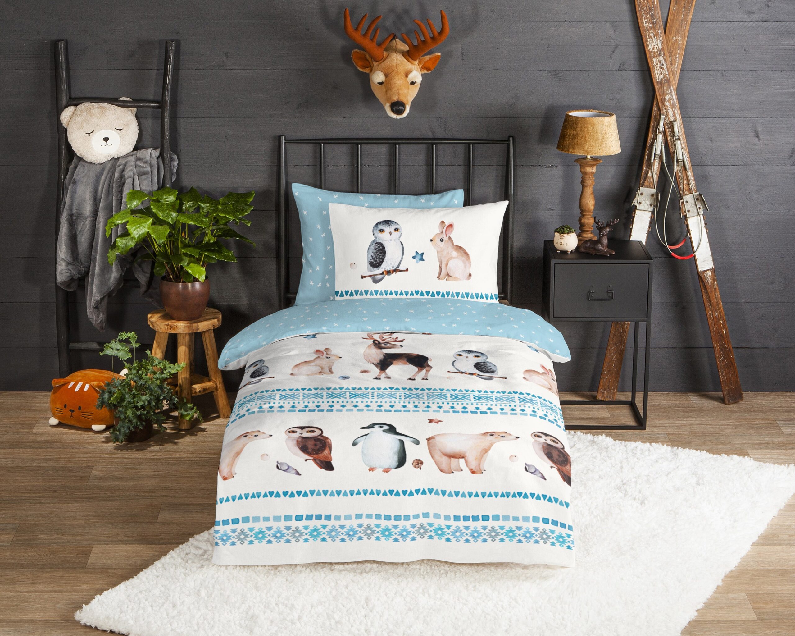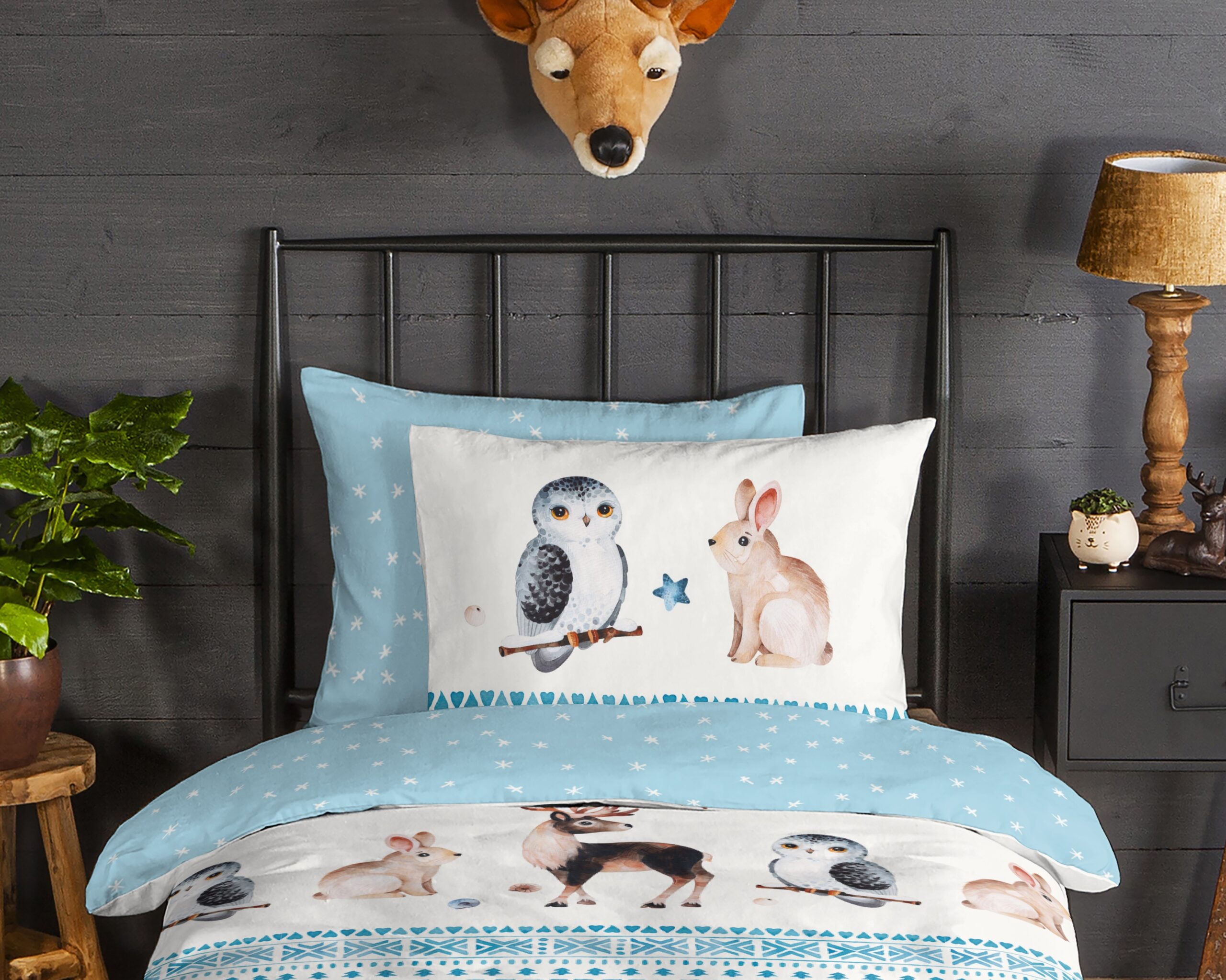 Flanellen Kinderdekbedovertrek “Freezing” van Good Morning met winter dieren, in de kleur “Blauw” is gemaakt van 100% geruwde 100% katoen/flanel. Doordat het katoen licht opgeruwd is, ontstaat er een zacht laagje. Deze warme, zachte stof is ademend en vochtabsorberend. Dit leuke kinderdekbedovertrek is een toevoeging aan iedere kinderkamer en is uitermate geschikt voor de koude wintermaanden.