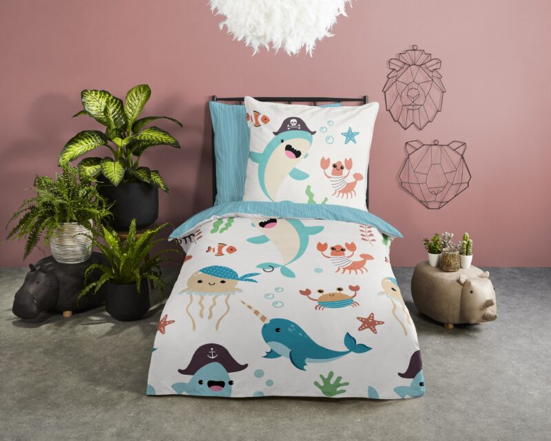 Kinderdekbedovertrek “Seaworld” van Good Morning met zeedieren, in de kleur “Multi” is gemaakt van 100% katoen. Deze kwaliteit is ademend, vochtabsorberend en voelt zacht en soepel aan. Dit leuke kinderdekbedovertrek is een toevoeging aan iedere kinderkamer en is geschikt voor ieder jaargetijde. Het katoenen dekbedovertrek is heerlijk koel in de zomer en geeft warmte in de winter.