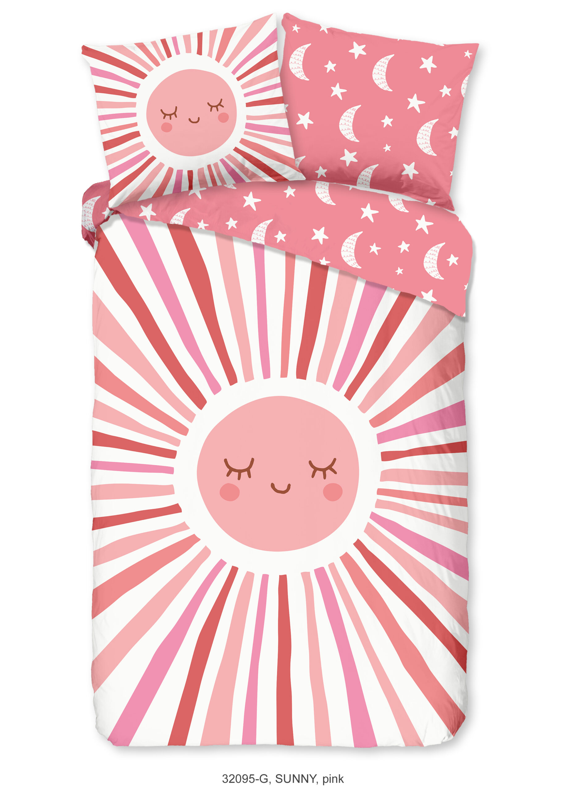 Kinderdekbedovertrek “Sunny” van Good Morning met zon, maan en sterren, in de kleur “Roze” is gemaakt van 100% katoen. Deze kwaliteit is ademend, vochtabsorberend en voelt zacht en soepel aan. Dit leuke kinderdekbedovertrek is een toevoeging aan iedere kinderkamer en is geschikt voor ieder jaargetijde. Het katoenen dekbedovertrek is heerlijk koel in de zomer en geeft warmte in de winter.