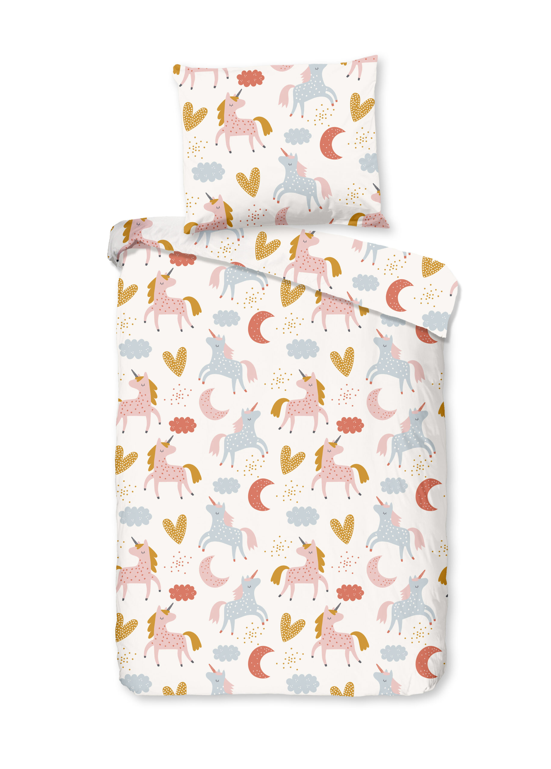 Good Morning Ledikant babydekbedovertrek "eenhoorn en regenboog" - Multi - (100x135 cm) - Katoen