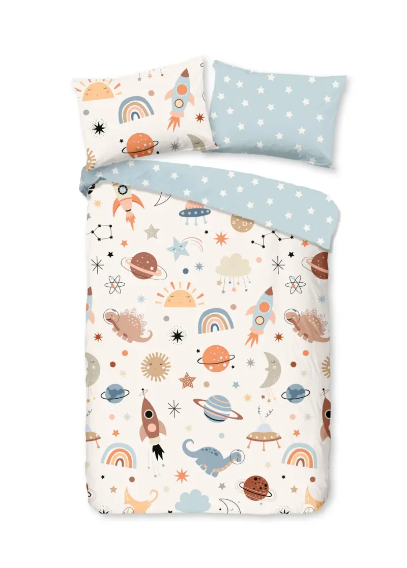 Good Morning Ledikant babydekbedovertrek "planeten" - Multi - (100x135 cm) - Katoen