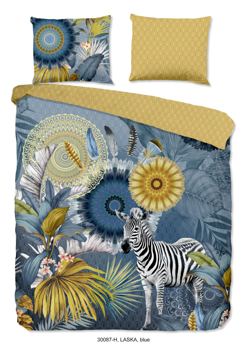 HIP Dekbedovertrek “mandala’s, bladeren en een zebra” – Blauw – (200×200/220 cm) – Katoen Satijn
