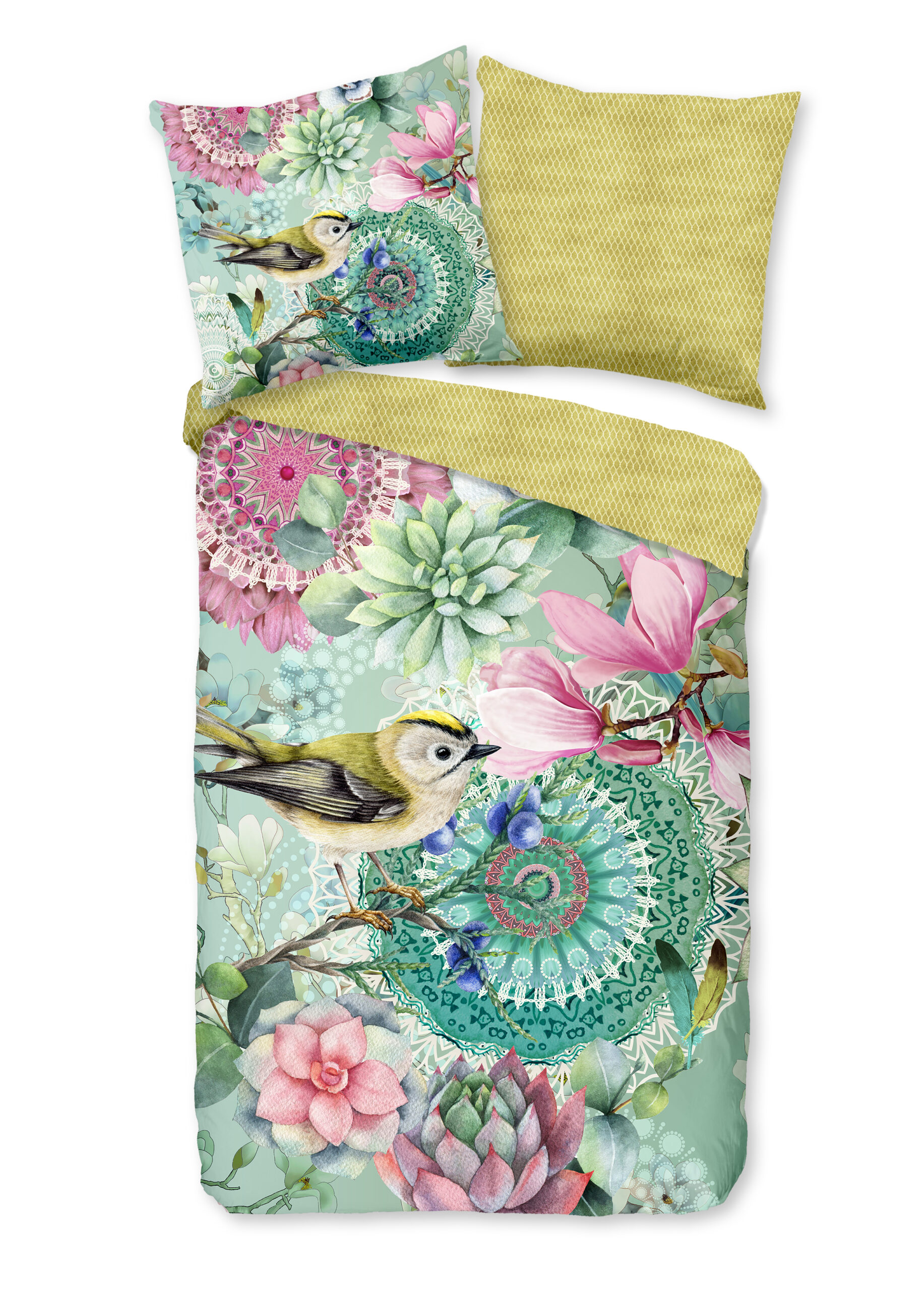 Satijnen dekbedovertrek “Xabine” van HIP. Dit luxe dekbedovertrek met mandala’s, bloemen en vogels, in de kleur “Groen” is een dekbedovertrek dat opvalt. Hip dekbedovertrekken zijn kleurrijk en uniek! Aan de achterkant van een Hip dekbedovertrek zit altijd een leuke, bijpassende print. Een dekbedovertrek van Hip fleurt iedere slaapkamer op!
