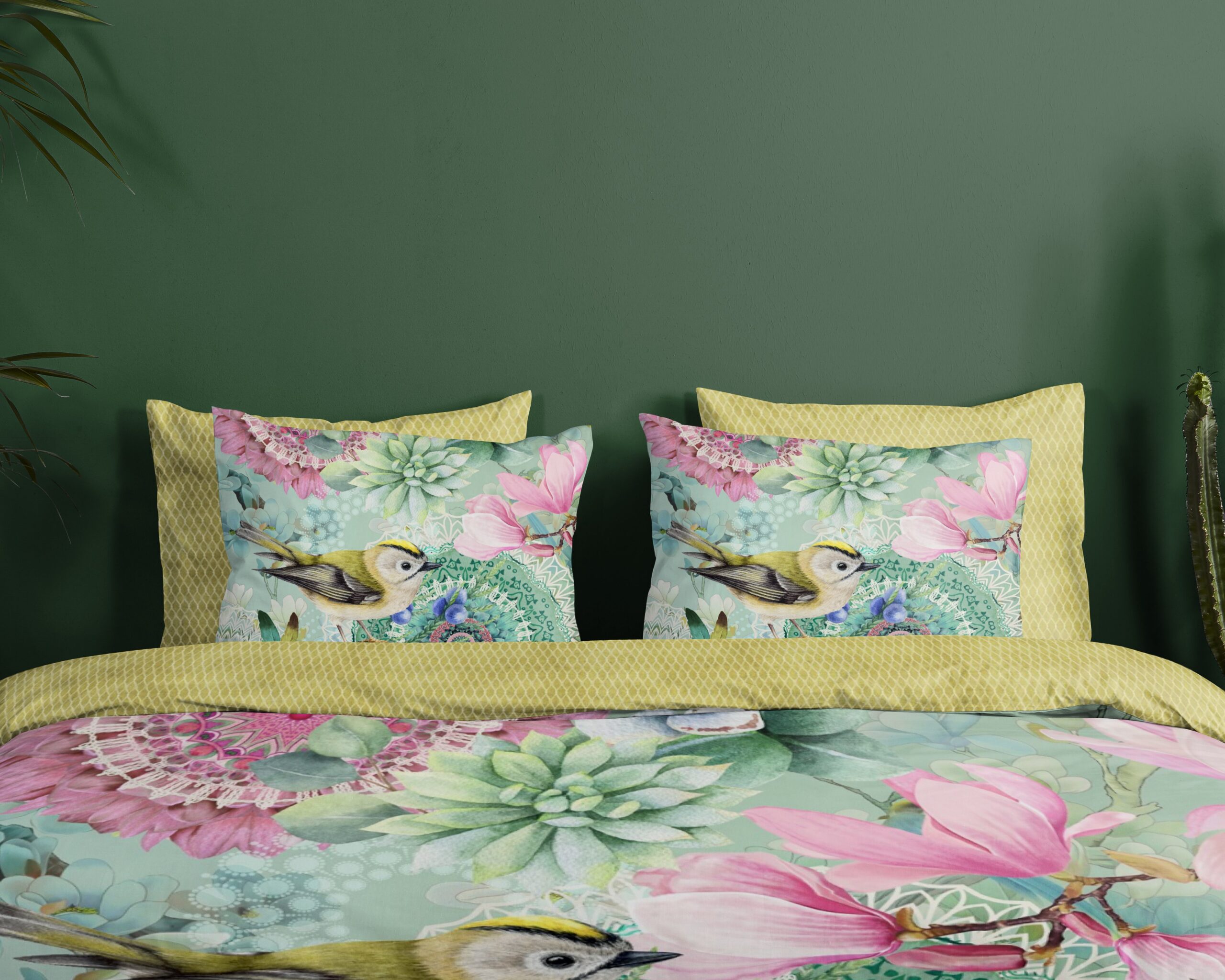 Satijnen dekbedovertrek “Xabine” van HIP. Dit luxe dekbedovertrek met mandala’s, bloemen en vogels, in de kleur “Groen” is een dekbedovertrek dat opvalt. Hip dekbedovertrekken zijn kleurrijk en uniek! Aan de achterkant van een Hip dekbedovertrek zit altijd een leuke, bijpassende print. Een dekbedovertrek van Hip fleurt iedere slaapkamer op!