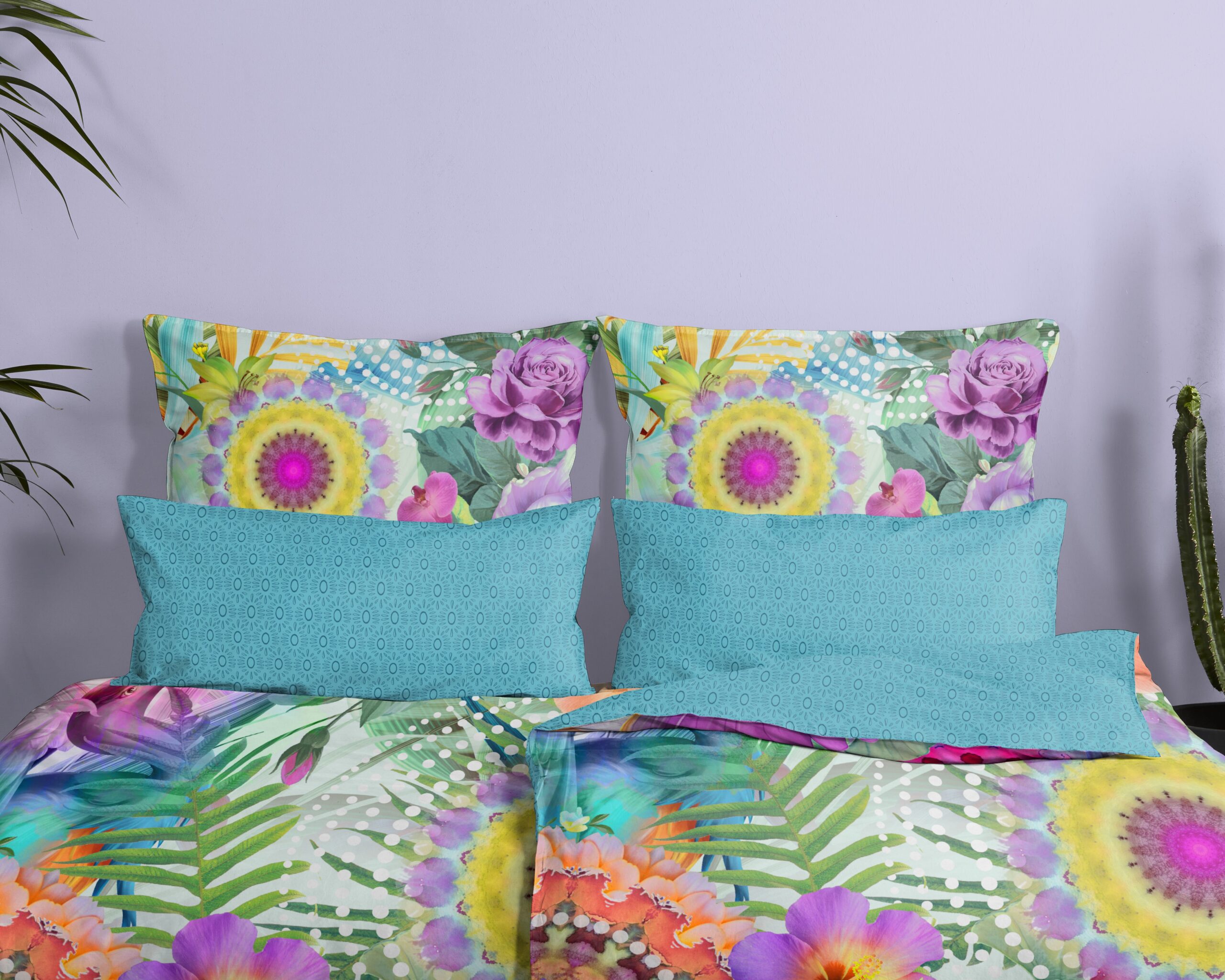 Satijnen dekbedovertrek “Aviva” van HIP. Dit luxe dekbedovertrek met mandala’s, bloemen en vogels, in de kleur “Multi” is een dekbedovertrek dat opvalt. Hip dekbedovertrekken zijn kleurrijk en uniek! Aan de achterkant van een Hip dekbedovertrek zit altijd een leuke, bijpassende print. Een dekbedovertrek van Hip fleurt iedere slaapkamer op!
