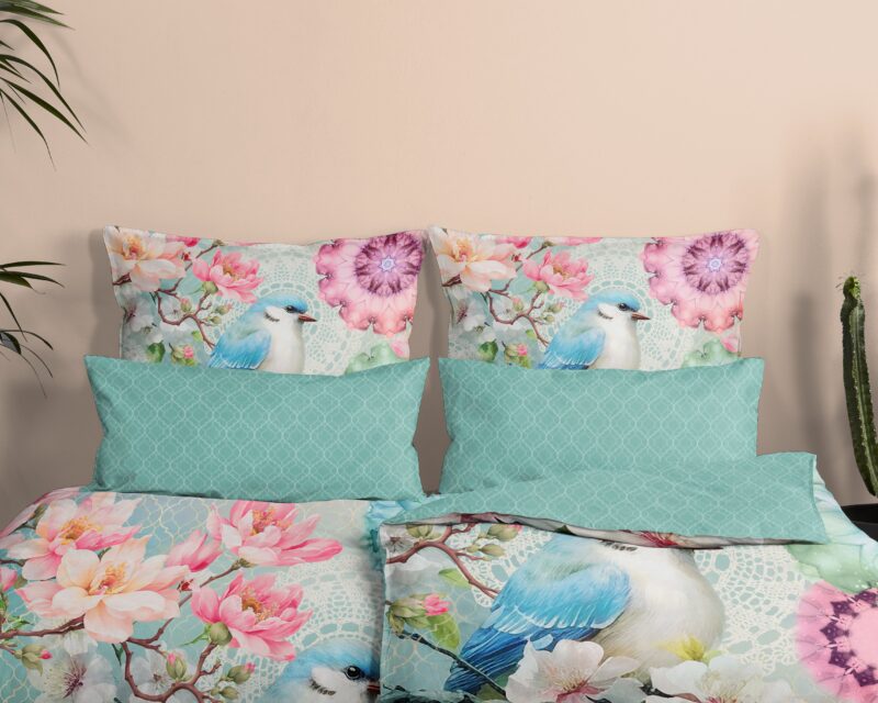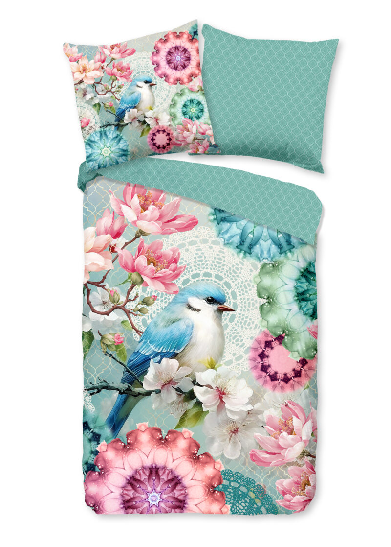 HIP Dekbedovertrek “mandalas, bloemen & vogel” – Mint – (135×200 cm) – Katoen Satijn