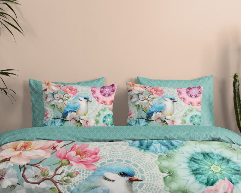 HIP Dekbedovertrek “mandalas, bloemen & vogel” – Mint – (140×200/220 cm) – Katoen Satijn