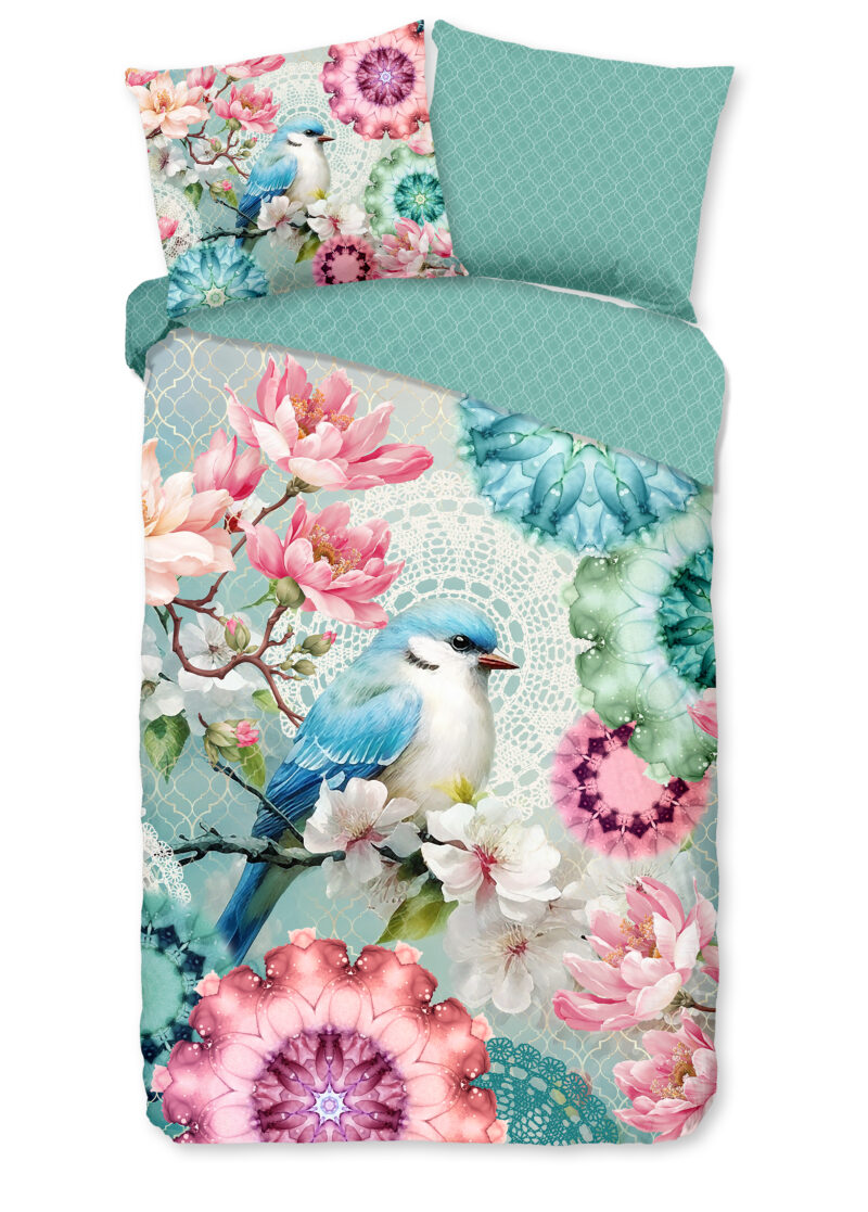 HIP Dekbedovertrek "mandalas, bloemen & vogel" - Mint - (140x200/220 cm) - Katoen Satijn