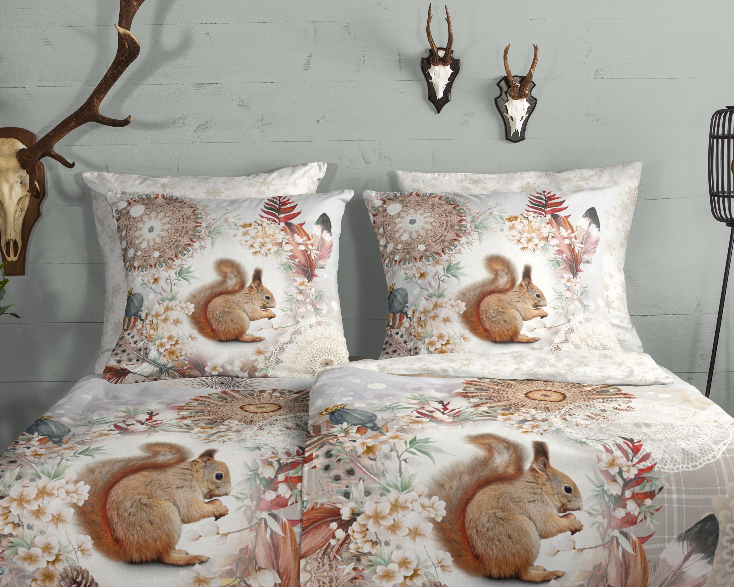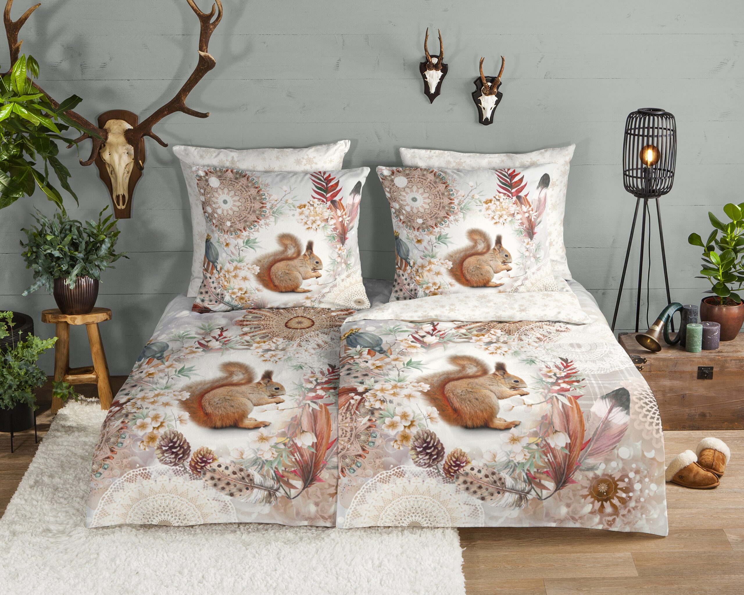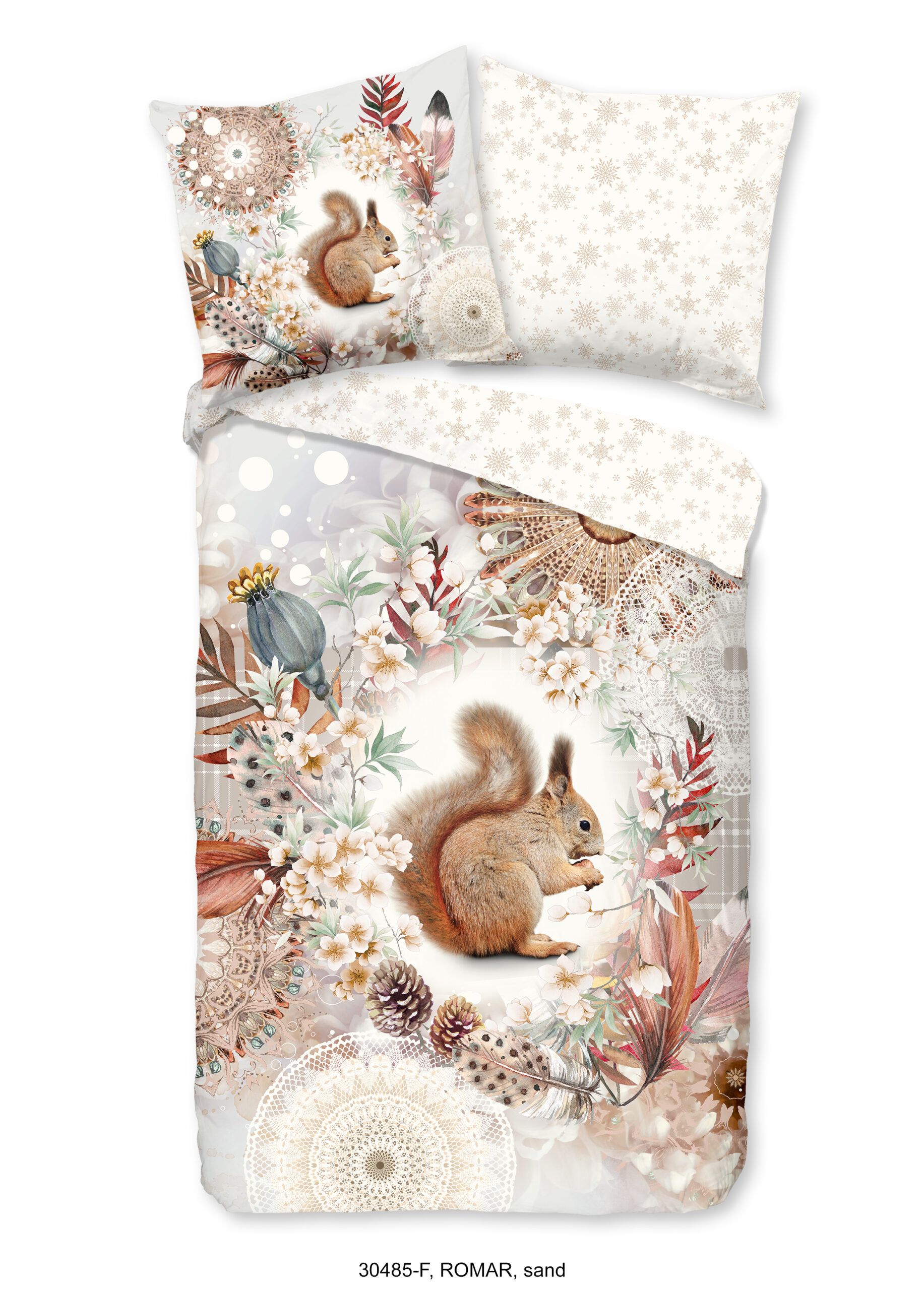 HIP Dekbedovertrek "mandala's en een eekhoorn" - Zand - (135x200 cm) - Katoen Flanel