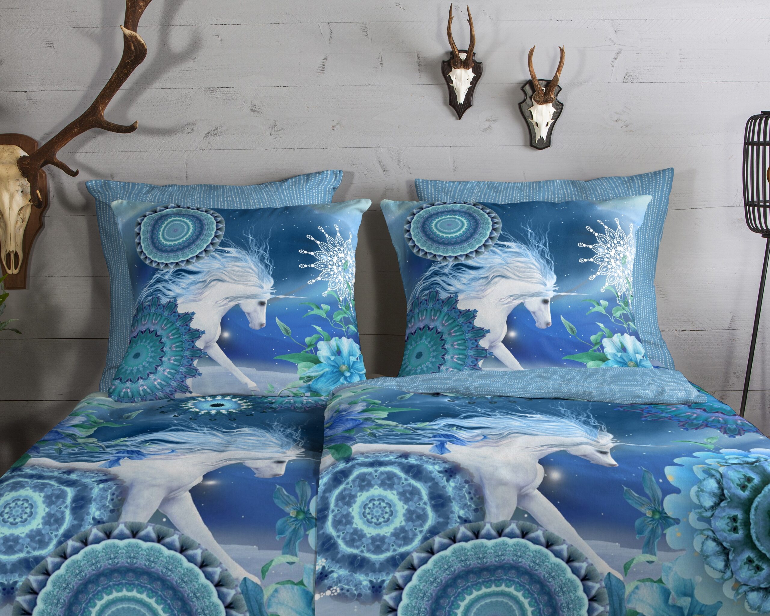HIP Dekbedovertrek “mandala’s en eenhoorn” – Blauw – (200×200 cm) – Katoen Flanel