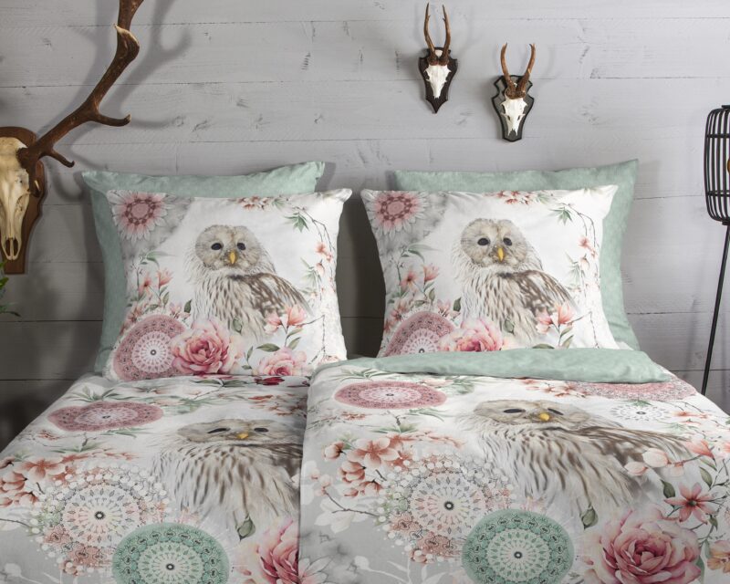 HIP Dekbedovertrek “mandalas & uil” – Wit – (135×200 cm) – Katoen Flanel