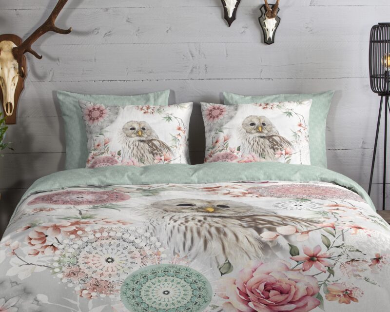 HIP Dekbedovertrek “mandalas & uil” – Wit – (200×200/220 cm) – Katoen Flanel