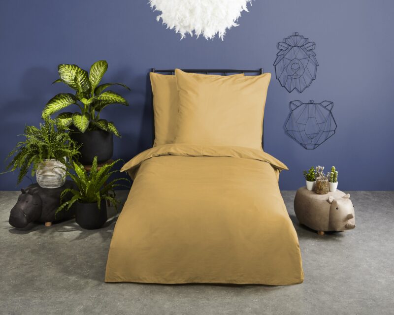 HIP Dekbedovertrek “uni dessin” – Oker – (135×200 cm) – Katoen Satijn