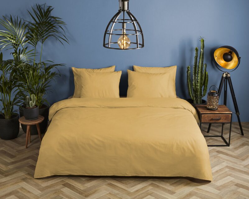 HIP Dekbedovertrek “uni dessin” – Oker – (240×200/220 cm) – Katoen Satijn