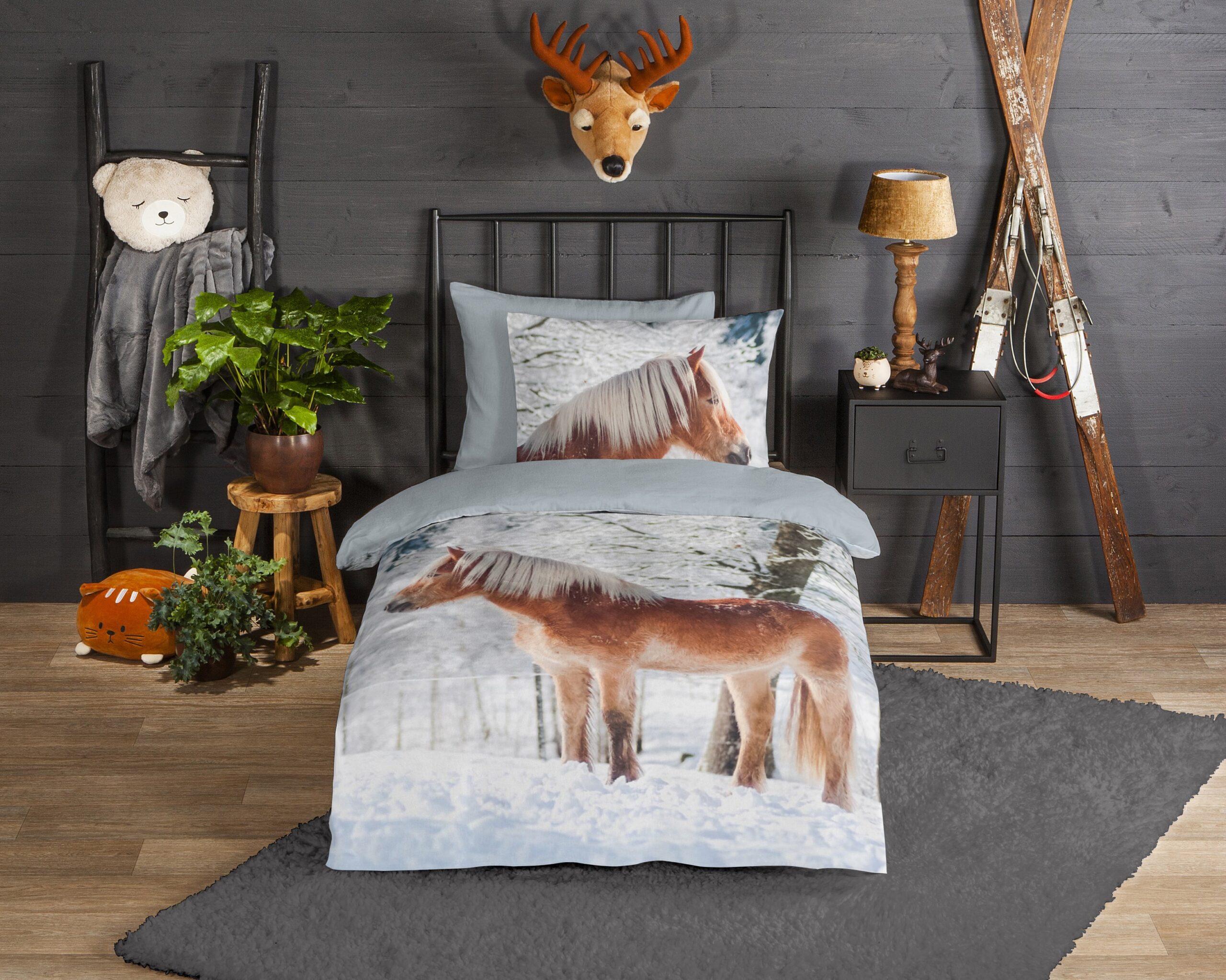 Good Morning Kinderdekbedovertrek “haflinger paard in de sneeuw” – Multi – (140×200/220 cm) – Katoen Flanel