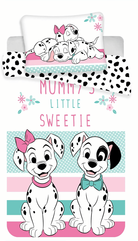 Disney Dalmatiërs Baby Dekbedovertrek. Dit vrolijke dekbedovertrek in baby-formaat heeft een afbeelding van de bekende Disney Dalmatiërs. Deze leuke pups zijn een echte aanwinst voor de babykamer! Op de achterkant staat een afwijkend patroon, wat een leuk effect geeft bij het openslaan van het dekbedje. Een leuk cadeau om te geven bij een babyshower of als kraam kado.
