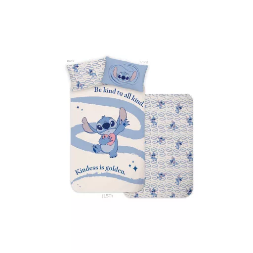 Stitch Heart dekbedovertrek. Een lief dekbedovertrek van de kleine alien Stitch. Deze ondeugd is een hit door de populaire films Lilo & Stitch. Stitch heeft een prominente plek gekregen op dit mooie dekbedovertrek en kussensloop. Het overtrek is dubbelzijdig bedrukt, waardoor deze reversible is. Een geweldig cadeau voor de liefhebbers van deze kleine vreemdeling en een leuk kado suggestie voor een verjaardag of de feestdagen.