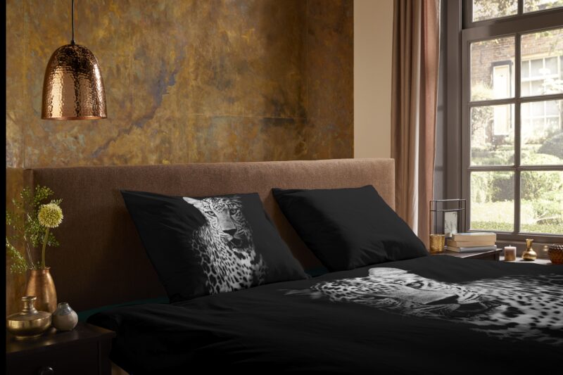 Dekbedovertrek “Hans” van Pure met luipaard, in de kleur “Zwart” is gemaakt van 100% polyester/microfiber. Het is een prettige stof, dat soepel om je heen valt en ook nog eens licht van gewicht is. Het is geschikt voor ieder jaargetijde en door de lichte glans heeft het een luxe uitstraling. Na het wassen is deze stof snel droog en kreukt niet tot nauwelijks waardoor strijken (vrijwel) niet nodig is.