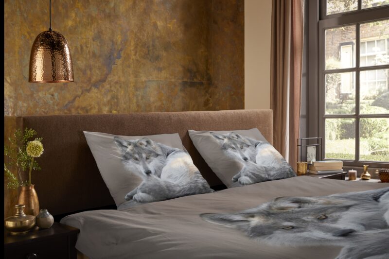 Dekbedovertrek “Wolf” van Pure met Wolf, in de kleur “Taupe” is gemaakt van 100% polyester/microfiber. Het is een prettige stof, dat soepel om je heen valt en ook nog eens licht van gewicht is. Het is geschikt voor ieder jaargetijde en door de lichte glans heeft het een luxe uitstraling. Na het wassen is deze stof snel droog en kreukt niet tot nauwelijks waardoor strijken (vrijwel) niet nodig is.